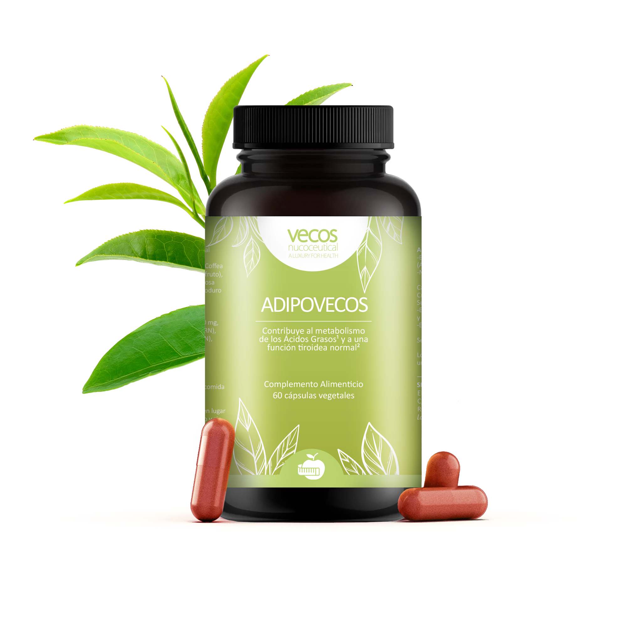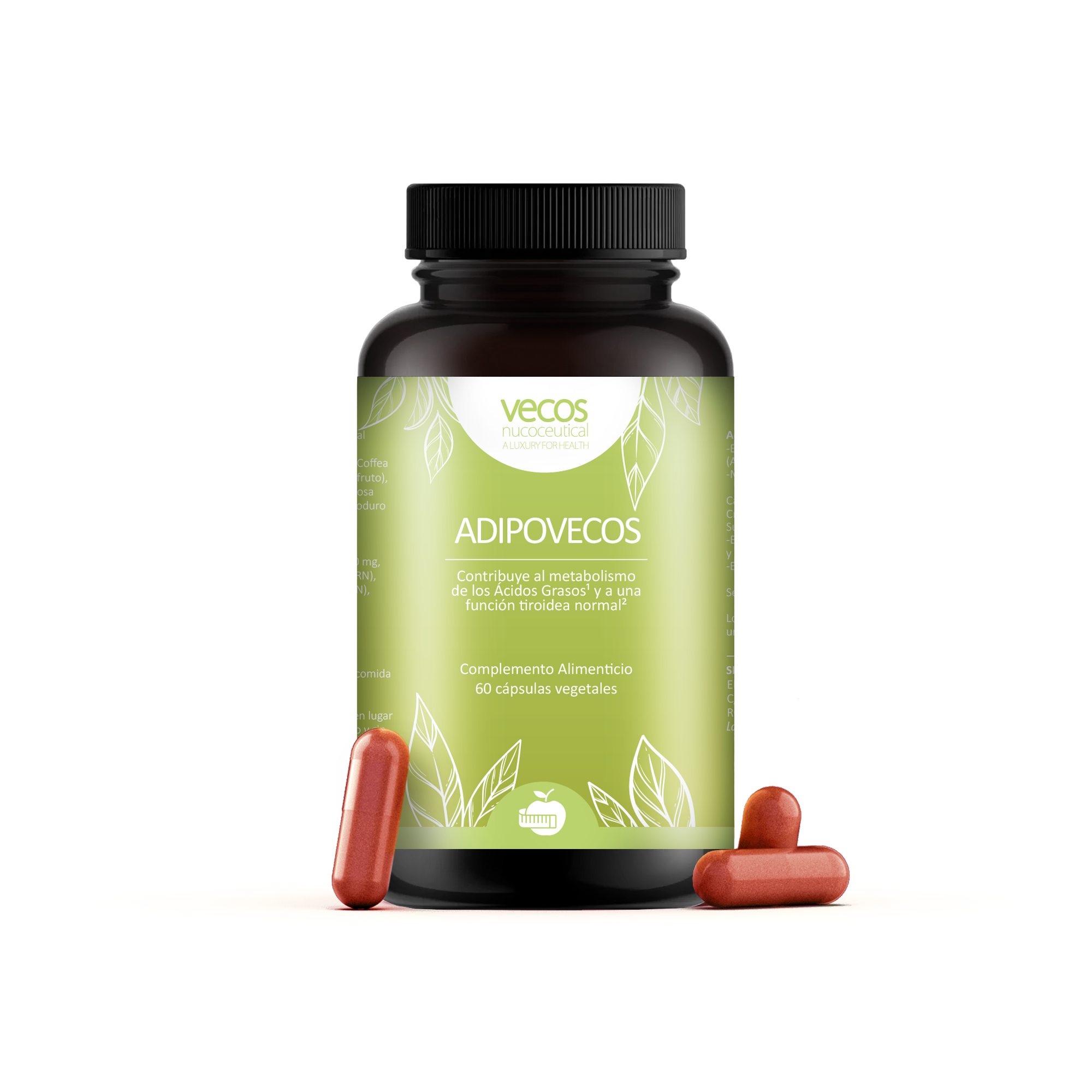 ADIPOVECOS es un complemento alimenticio diseñado específicamente para contribuir al metabolismo normal de los ácidos grasos, gracias al Zinc; y contribuir a una función tiroidea normal, gracias al Selenio y al Yodo.
