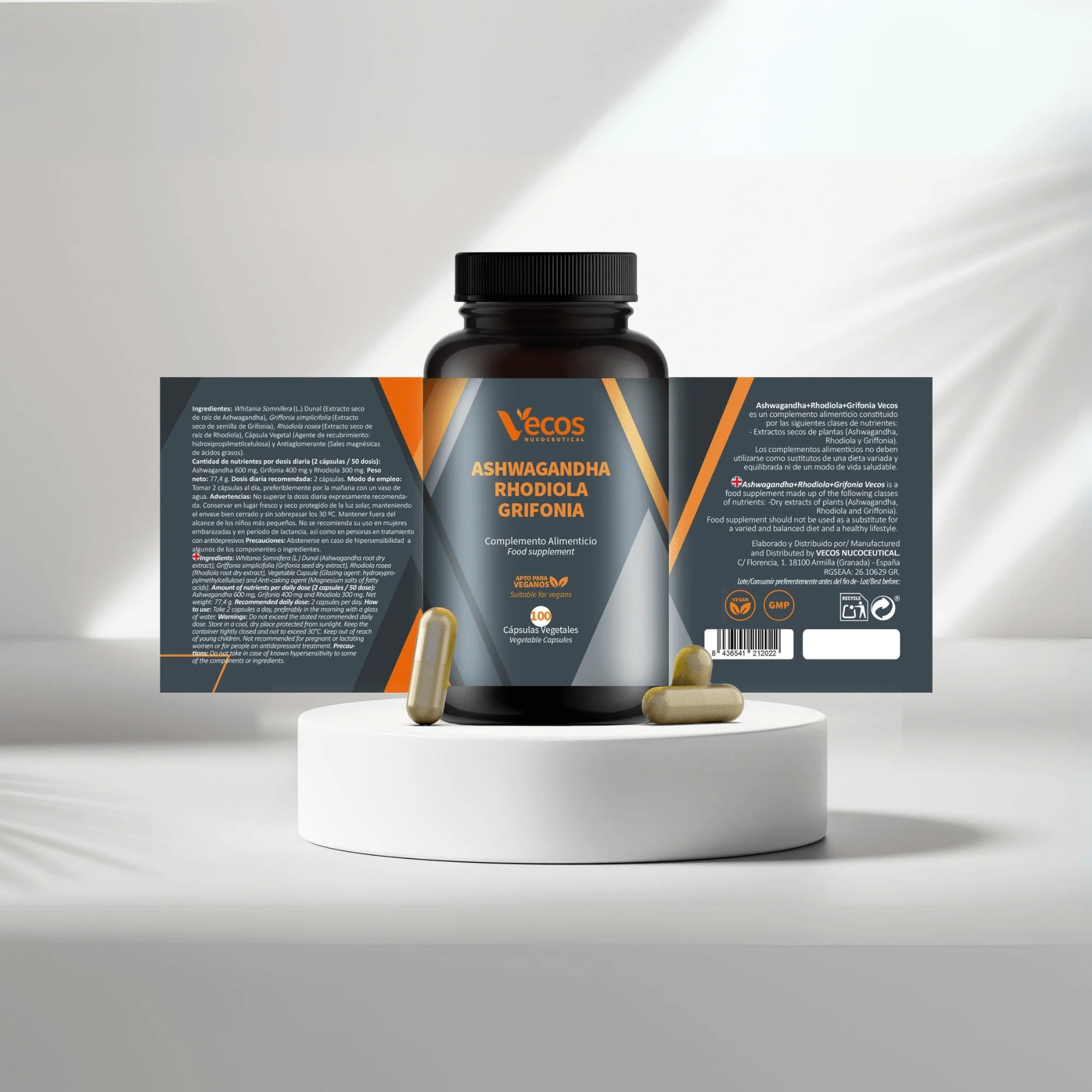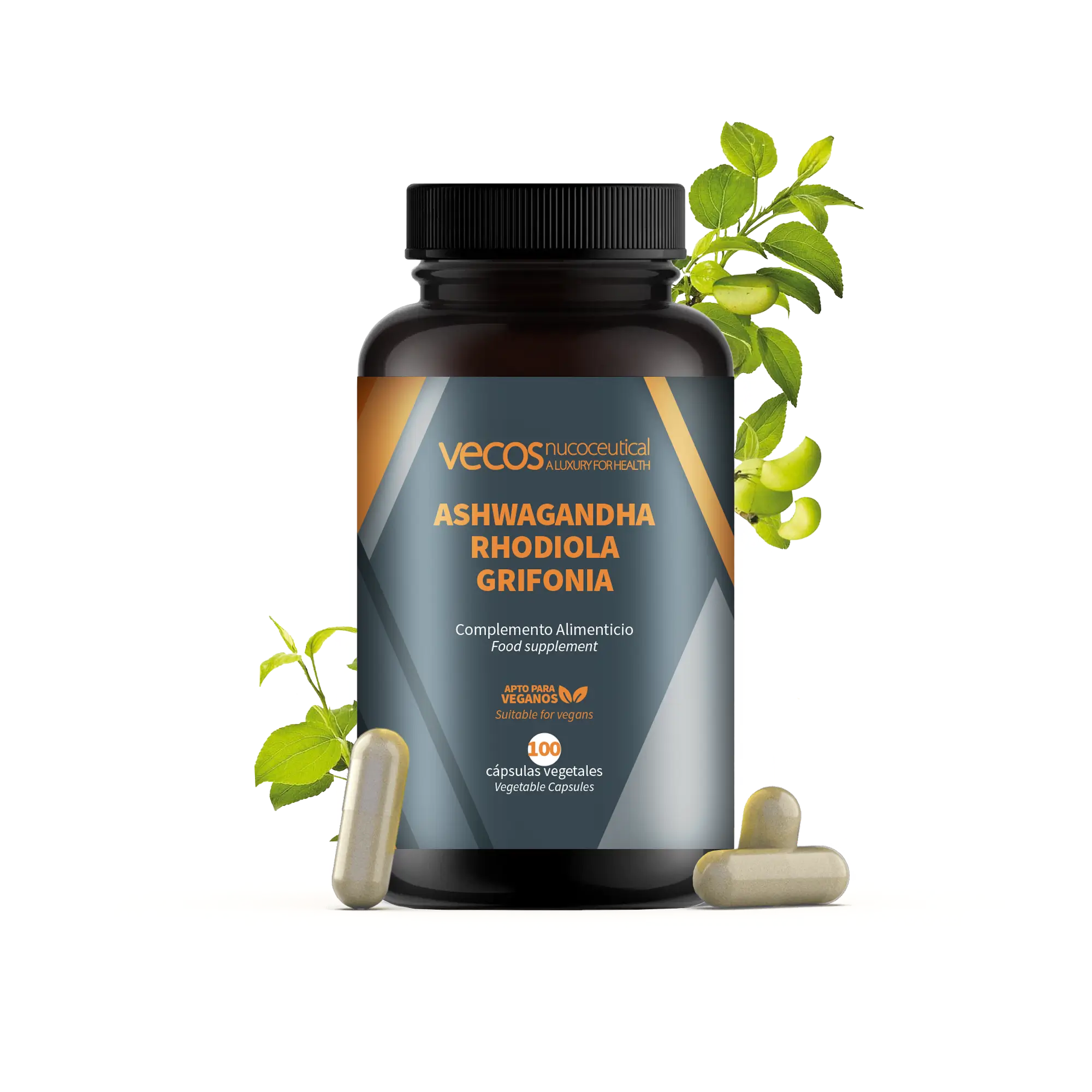 Y todo esto incluido en una cápsula. ¡Ashwagandha – Rhodiola – Grifonia VECOS es tu suplemento aliado diario!