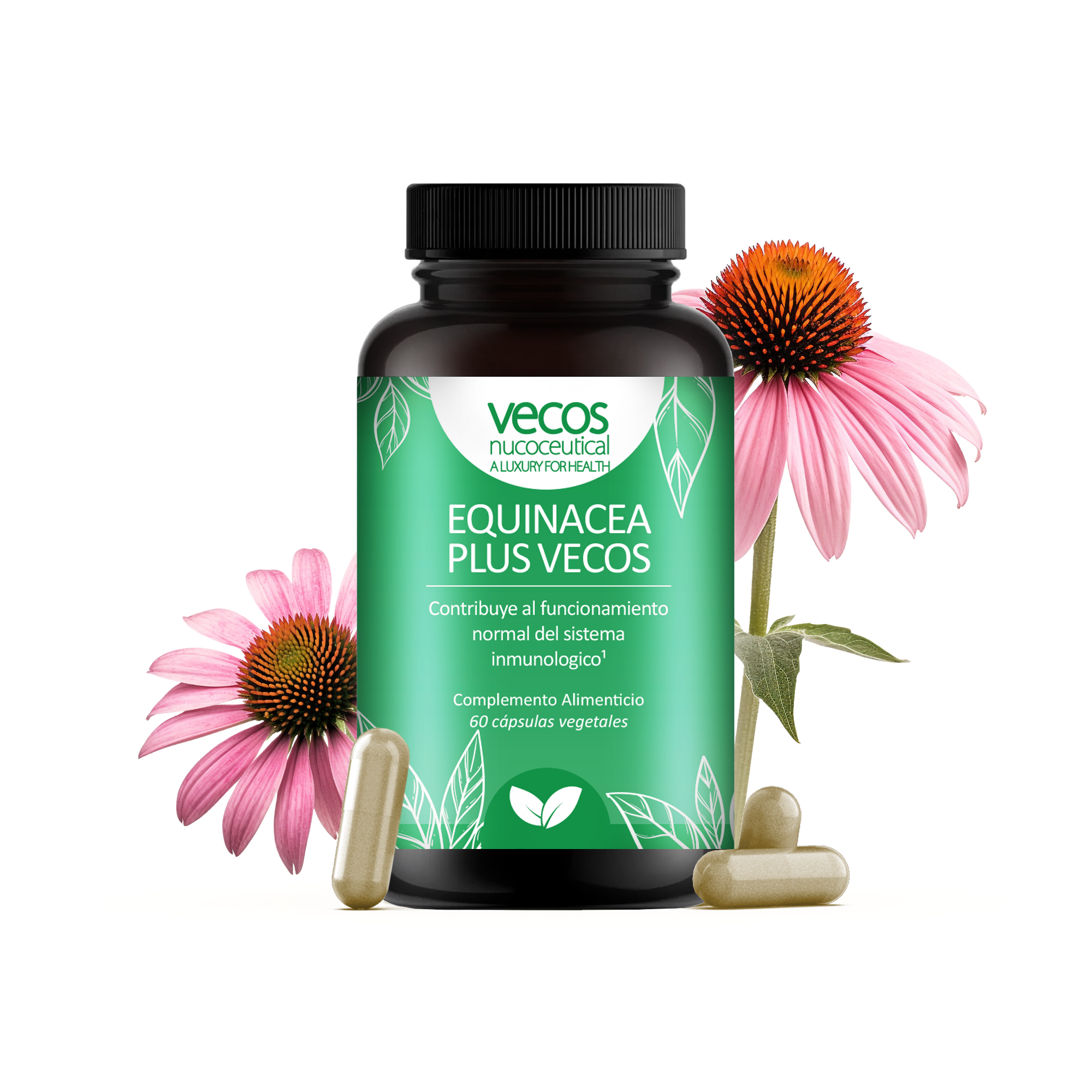 Equinácea Plus Vecos es un complemento alimenticio especialmente formulado para ayudar al funcionamiento del sistema defensivo natural gracias a su contenido en extracto seco de Equinácea.