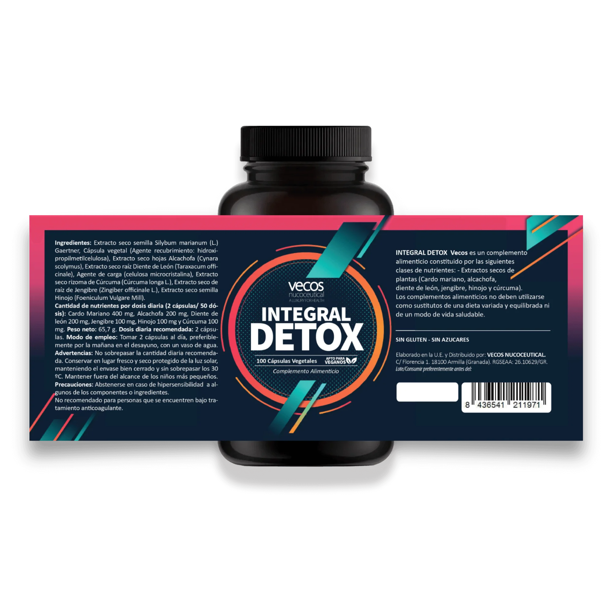 INTEGRAL DETOX es un complemento alimenticio natural enriquecido con extractos secos de plantas. Formulado con Alcachofa, Diente de León, Jengibre y Cúrcuma; además de con Cardo Mariano e Hinojo.