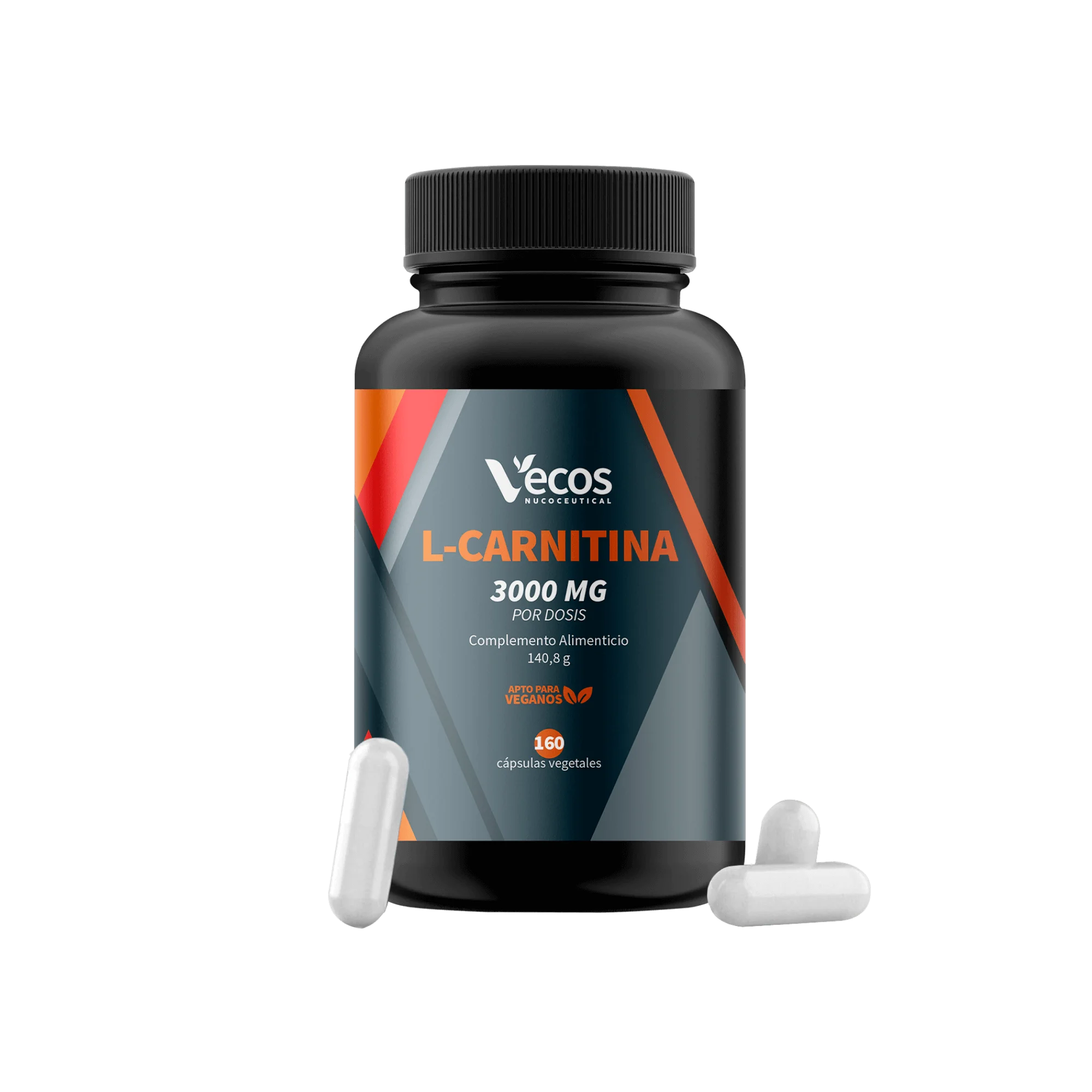 L-Carnitina 3000 mg de VECOS es un complemento alimenticio en cápsulas vegetales elaborado con L-Carnitina, compatible con dietas veganas y vegetarianas.