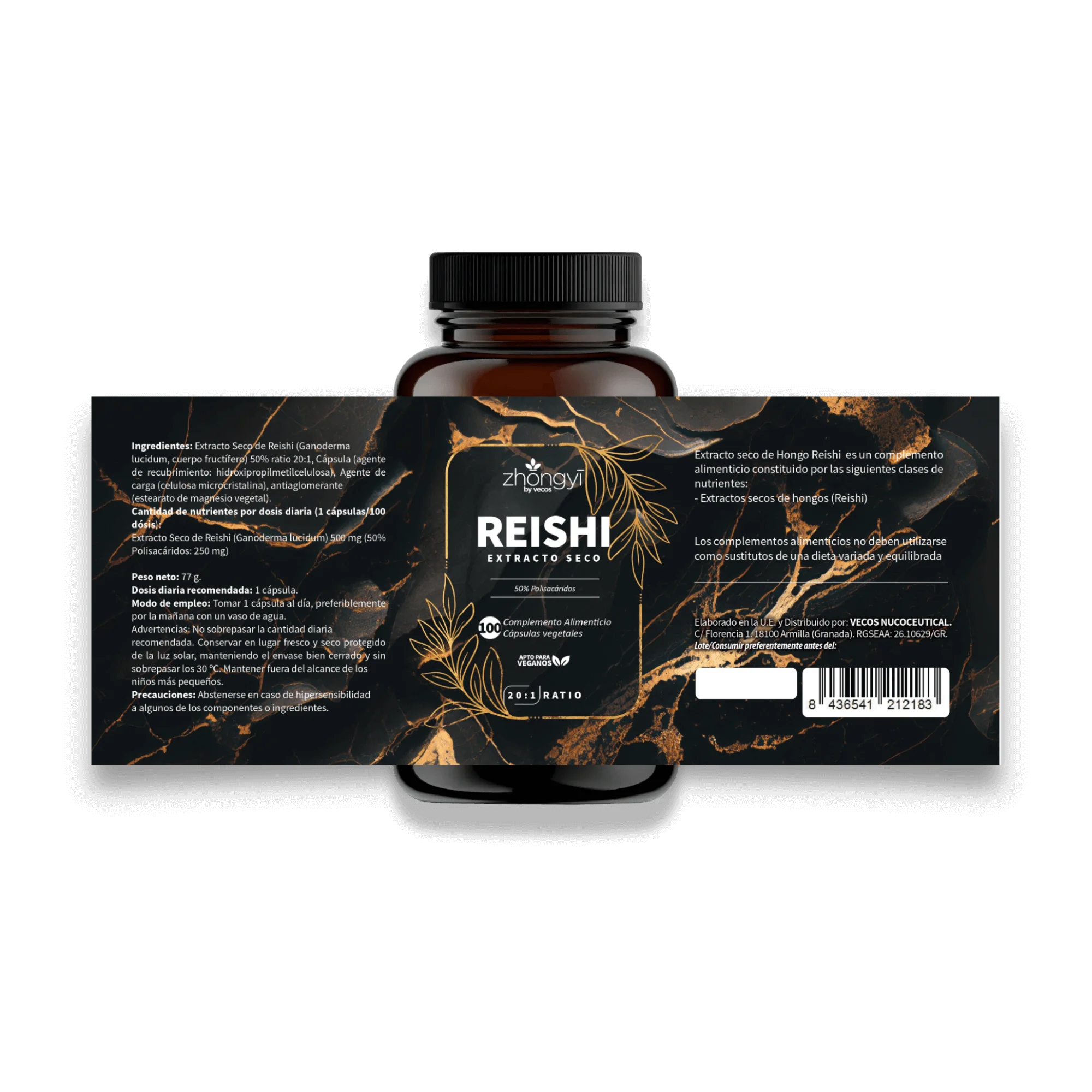 Reishi Zhongyi 100 cápsulas es un complemento natural formulado con extracto seco de Reishi (Ganoderma lucidum).