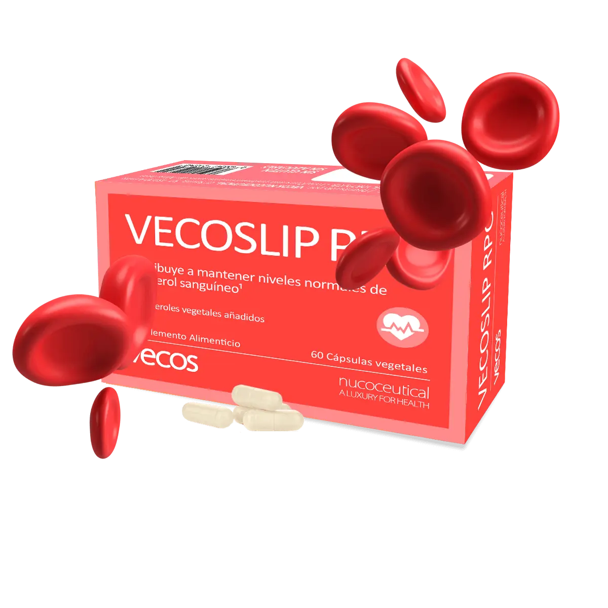 Vecoslip Pro es un suplemento alimenticio elaborado con Mezcla de Fitoesteroles, E.S Bergamota, E.S Levadura de arroz roja, E.S Caña de azúcar (Policosanol), Vitamina B3, Coenzima Q10 y Vitamina B9.
