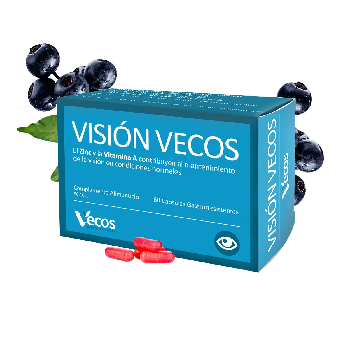 Visión VECOS es un complemento alimenticio con una combinación única de ingredientes naturales entre los que se encuentran el Zinc y la Vitamina A, que contribuyen al mantenimiento de la visión en condiciones normales.