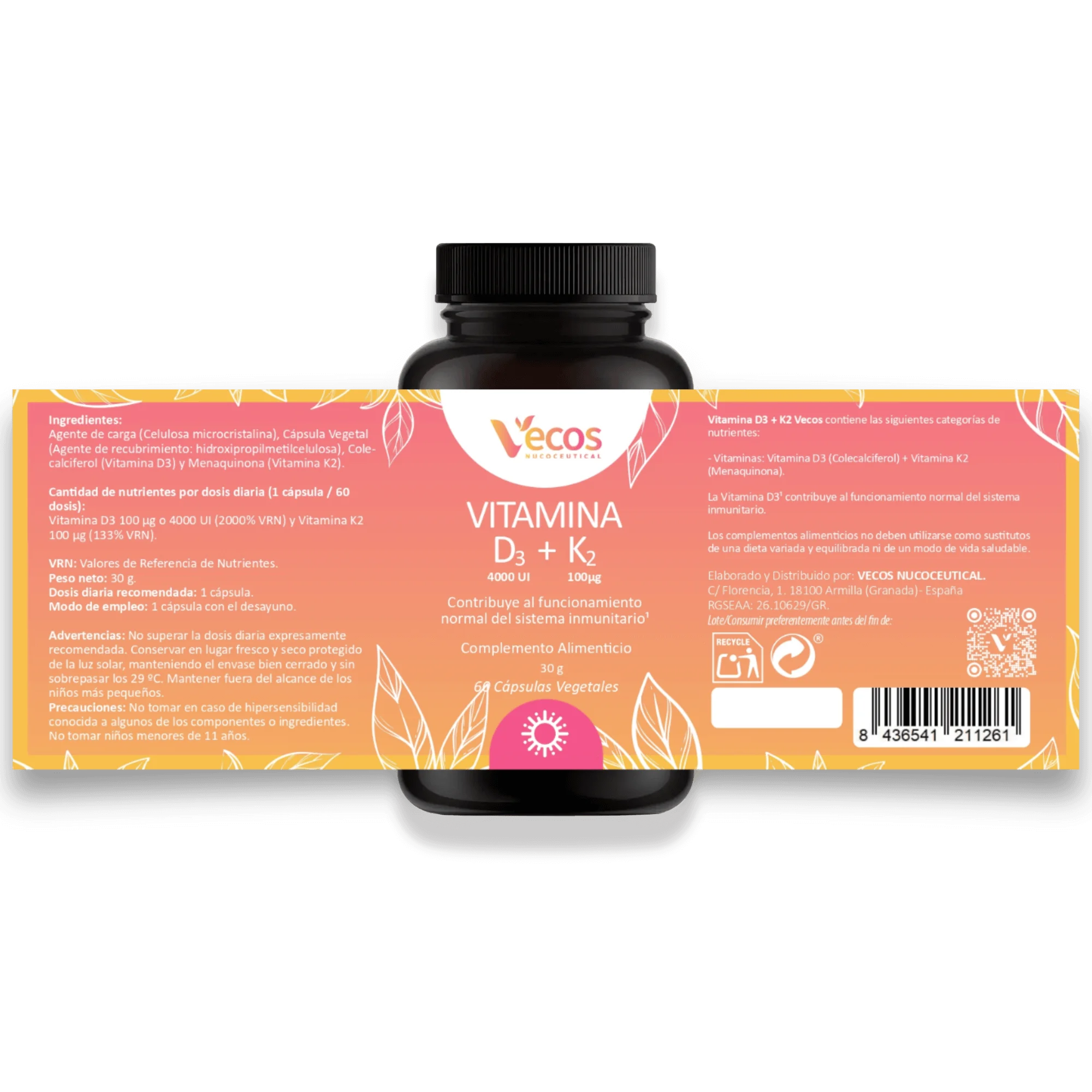 Producto Elaborado y Distribuido por: VECOS NUCOCEUTICAL. C/ Florencia, 1. 18100 Armilla (Granada) - España.